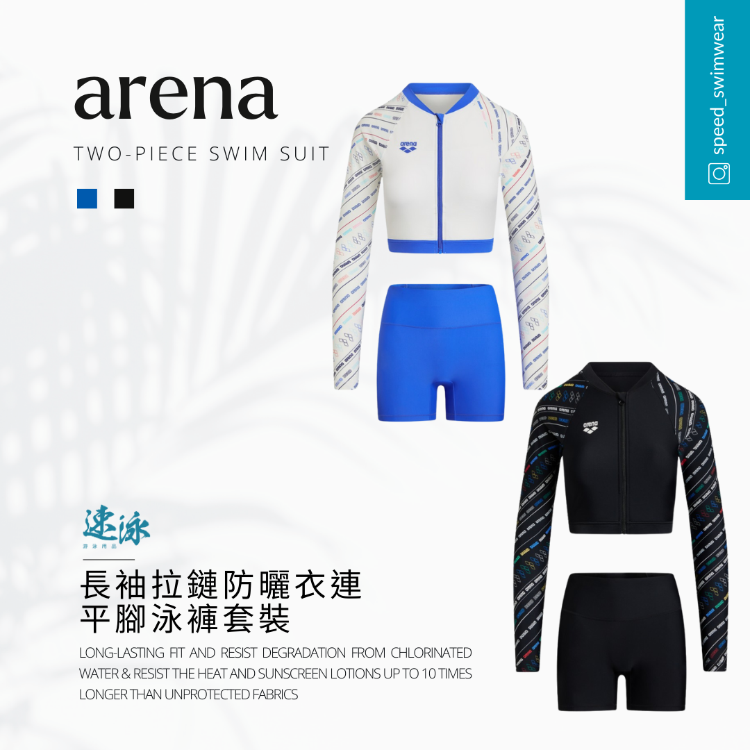Arena Diagonal 5.0 Long Sleeves Zip Up Sun Top With Jammer 女士分體泳衣