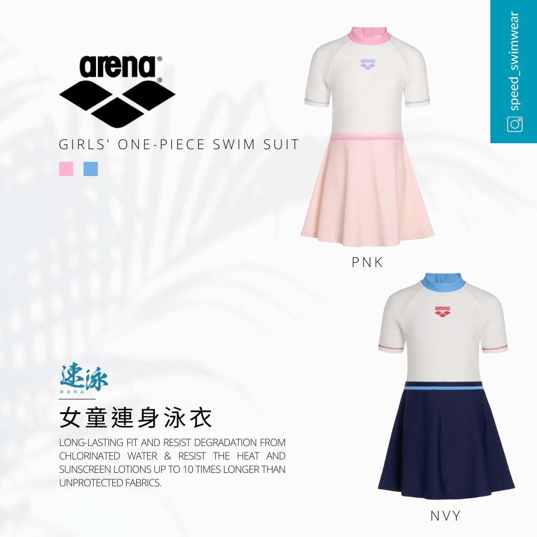 Arena Kids Summer Vista Short Sleeves One Piece Dress With Inner Shorts 女童連身泳衣